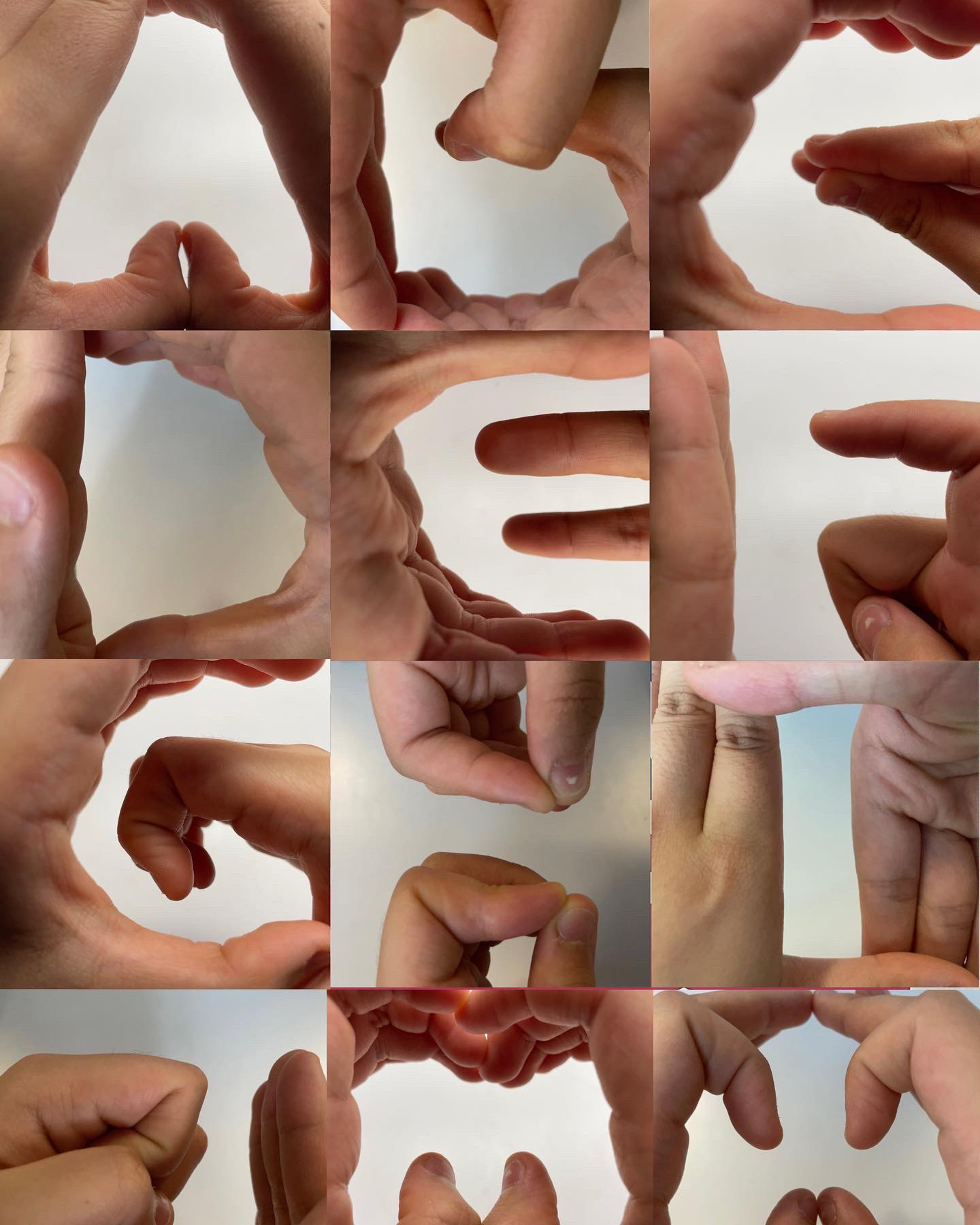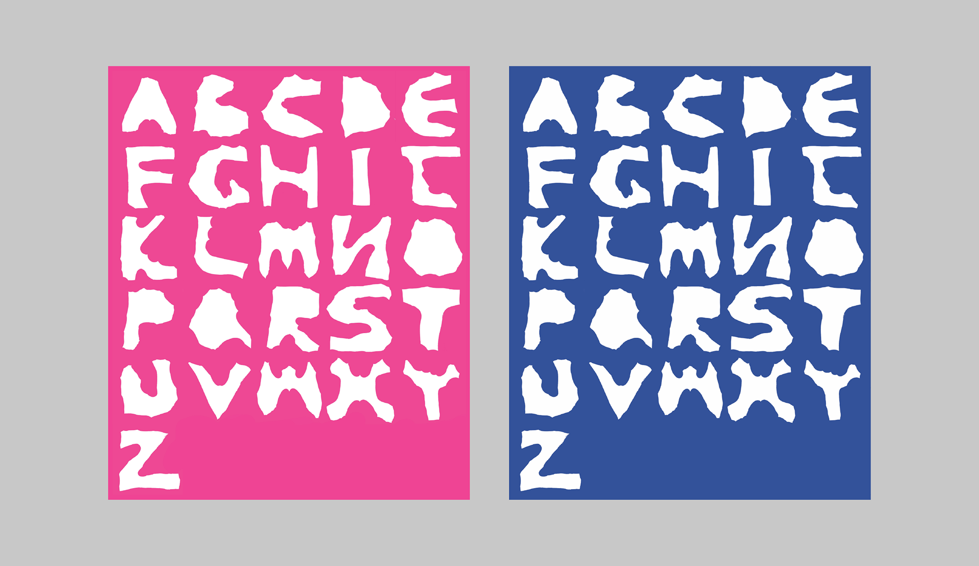 Camouflage This work is a typographic experiment that explores how letters can emerge from what is usually overlooked. I created each form by tracing the negative spaces shaped between hands and fingers, masking only the white space instead of the hand itself. From afar, the letters appear hidden within abstract shapes, but up close, you can recognize that they are built from the contours of human hands. The name Camouflage reflects this duality: the type is concealed within gestures yet revealed through careful attention.