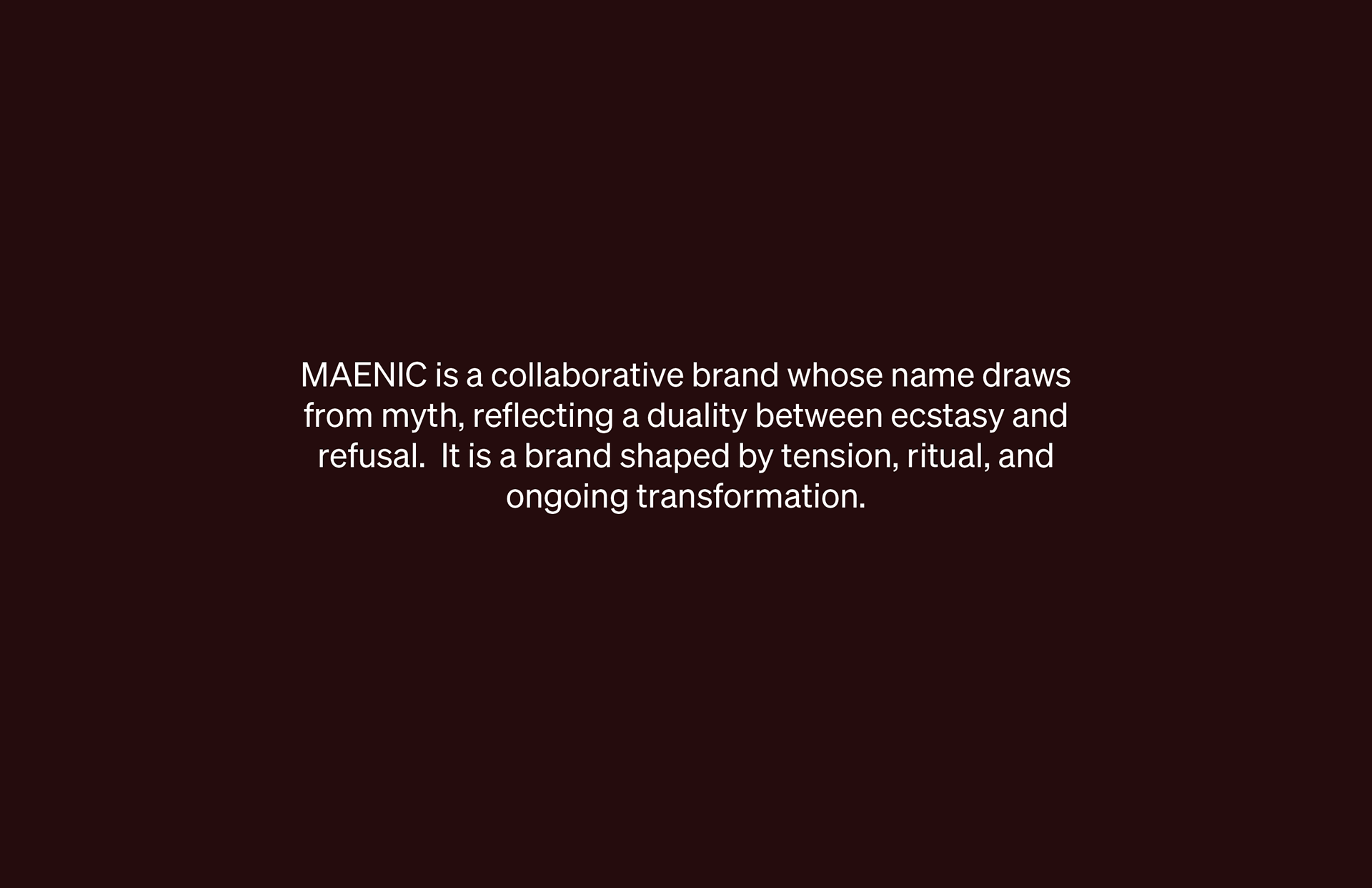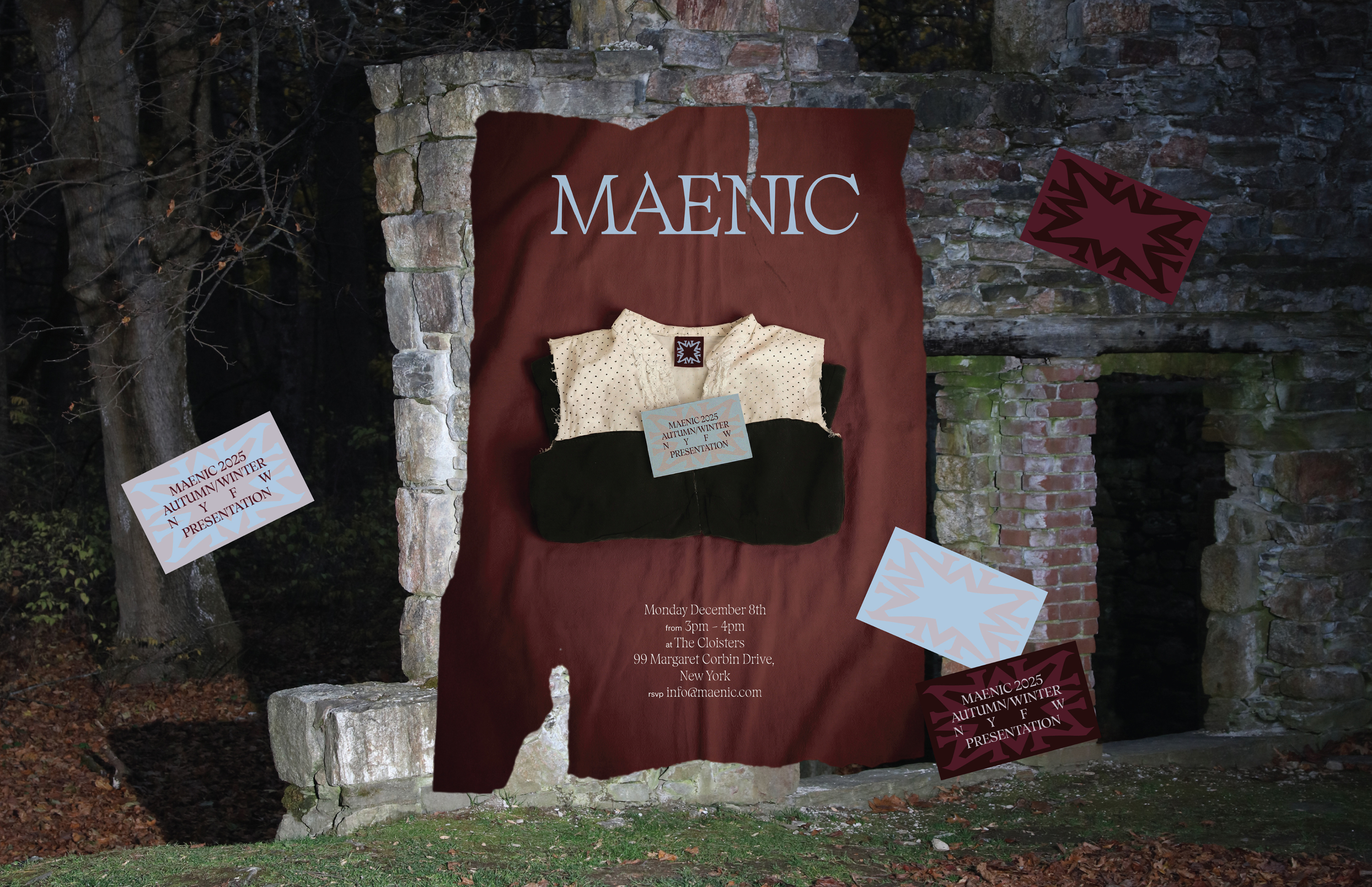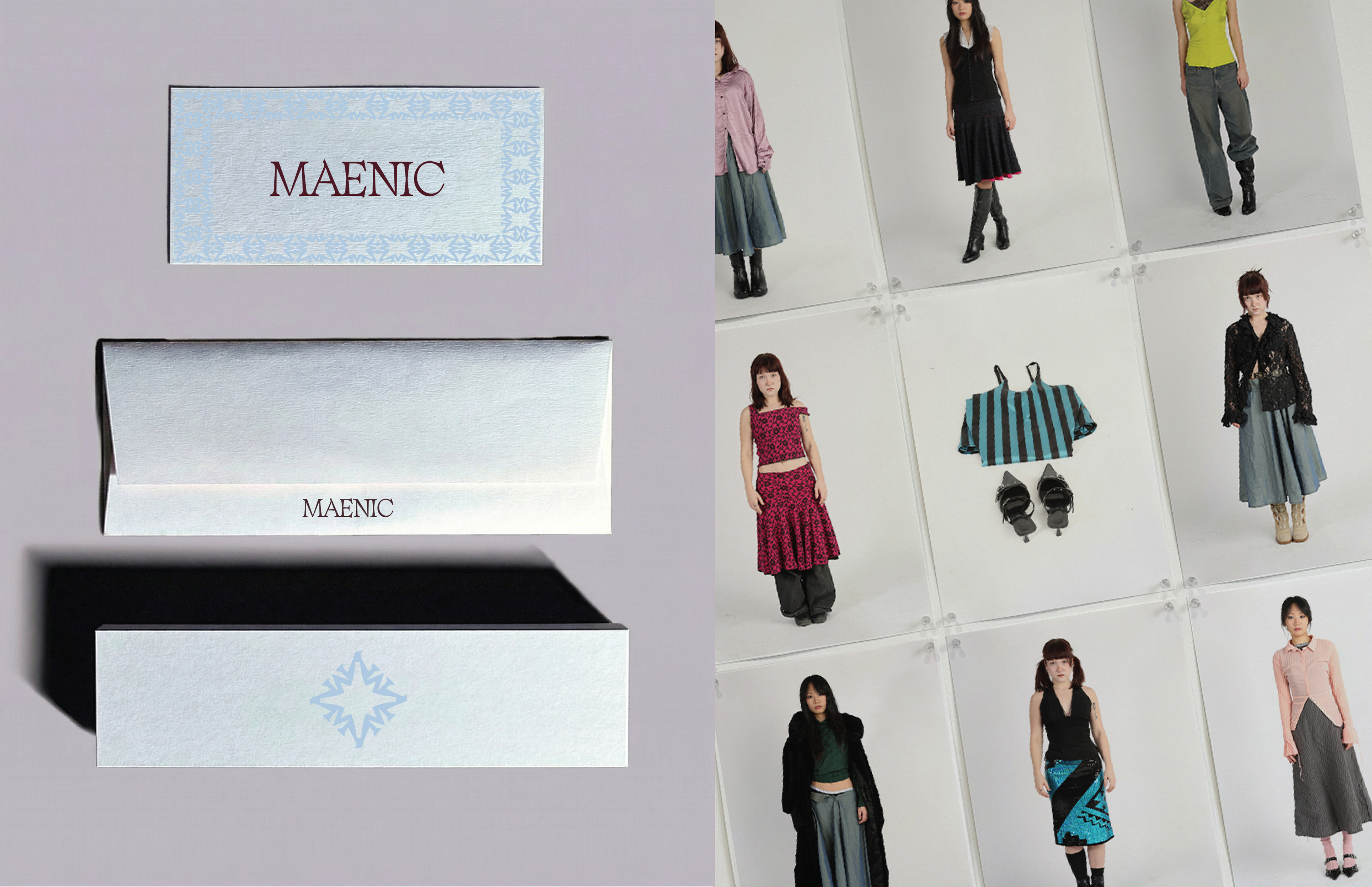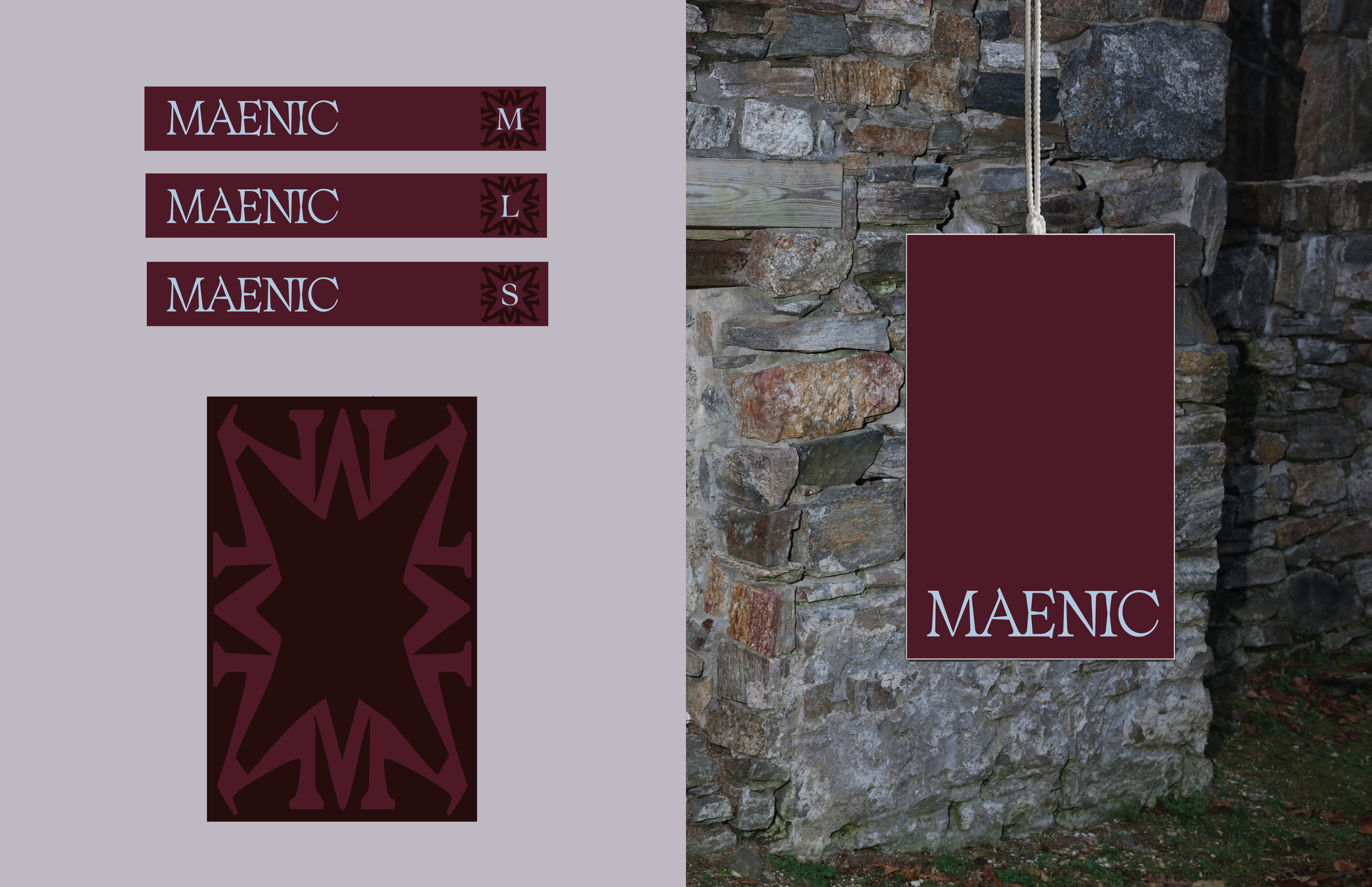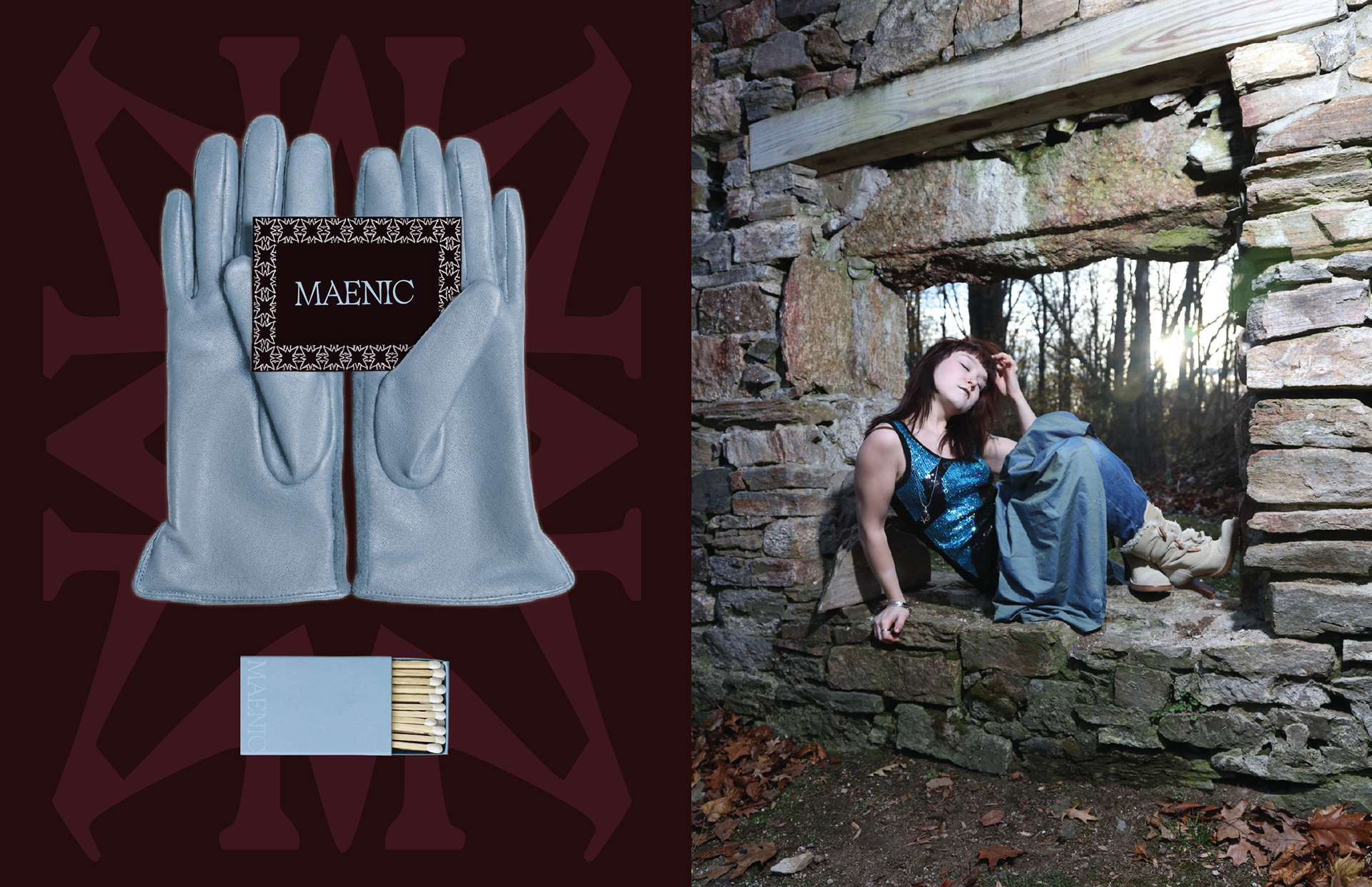 This branding project centers on MAENIC, a fashion brand rooted in myth, ritual, and transformation. Built in collaboration with apparel designer Payton Thurber, the brand draws from the tension between solidity and frenzy, stone and ecstasy, refusal and release. MAENIC explores how clothing can function as both armor and expression, merging gothic, fairy-tale, and witchcraft influences into a sensual, body-aware visual language.